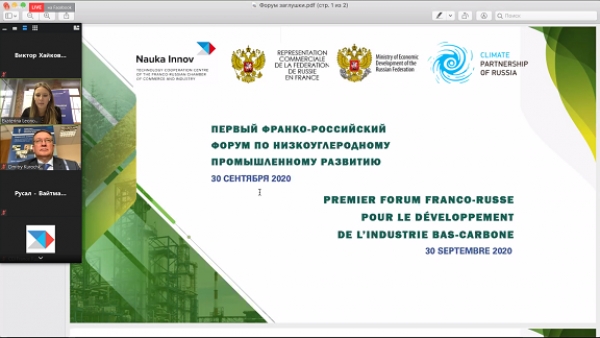 30 сентября 2020 г. прошел онлайн Первый франко-российский форум по низкоуглеродному промышленному развитию.
