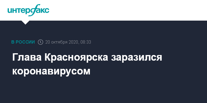 Москва. 20 октября. INTERFAX.RU - Мэр Красноярска Сергей Еремин получил положительный результат теста на коронавирус.