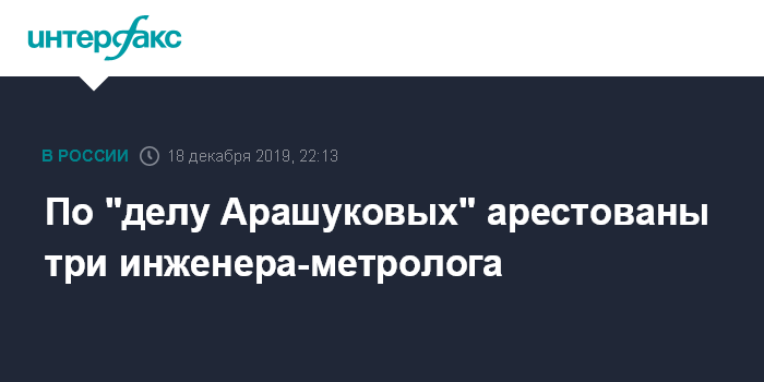 Москва. 18 декабря. INTERFAX.RU - В Москве Басманный суд арестовал до 17 февраля трех инженеров-метрологов филиалов ООО "Газпром межрегионгаз Ставрополь", задержанных по уголовному делу бывшего сенатора от Карачаево-Черкесии Рауфа Арашукова и его отца Рауля.