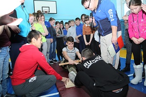 В школе-интернате состоялся интерактивный урок ненецкого языка. Гости были удивлены тем, что здесь не вызывают к доске по фамилии, так как у всех учеников всего две родовые фамилии – Пяк и Айваседо. Гости приняли участие в состязаниях по национальным играм: прыжкам через нарты, перетягиванию палки и накидыванию тынзяна на хорей (аркана на шест). Победителям вручили кубок «Северная дружба».