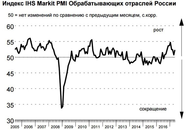 Индекс деловой активности (Purchasing Managers Index, PMI) в промышленности России в мае 2017 г. вырос с апрельских 50,8 до 52,4 пункта, свидетельствуют данные IHS Markit.
