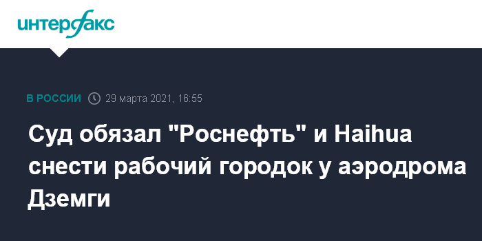 Суд обязал "Роснефть" и Haihua снести рабочий городок у аэродрома Дземги