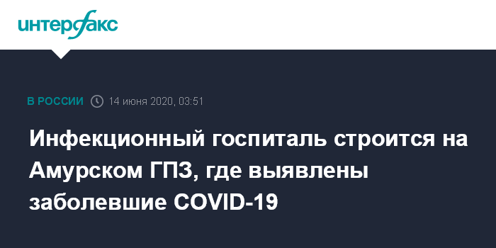 Москва. 14 июня. INTERFAX.RU - Высококвалифицированный штат медиков контролирует ситуацию на Амурском газоперерабатывающем заводе (ГПЗ, Амурская область), где выявлено более сотни зараженных COVID-19, для обслуживания объекта возводится современный инфекционный госпиталь.