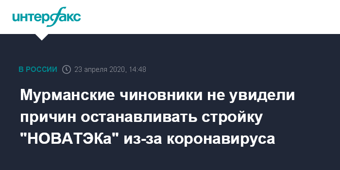 Москва. 23 апреля. INTERFAX.RU - Губернатор Мурманской области Андрей Чибис по-прежнему не видит оснований запретить работы на промплощадке Центра строительства крупнотоннажных морских сооружений (ЦСКМС) ООО "НОВАТЭК-Мурманск" в Белокаменке, где 451 человек заразился коронавирусом.