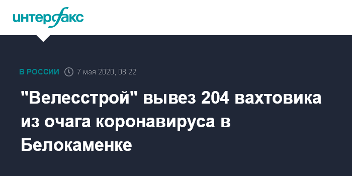 Москва. 7 мая. INTERFAX.RU - "Велесстрой", подрядчик Центра строительства крупнотоннажных морских сооружений (ЦСКМС) ООО "НОВАТЭК-Мурманск" в селе Белокаменка, где выявлен очаг коронавирусной инфекции, сообщил, что вывез с объекта 204 вахтовика.