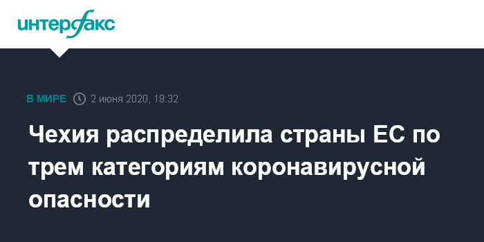 Москва. 2 июня. INTERFAX.RU - Чешское правительство одобрило систему, которая распределила страны Евросоюза по трем категориям в зависимости от их эпидемиологической обстановки и безопасности для поездок, сообщают европейские СМИ.