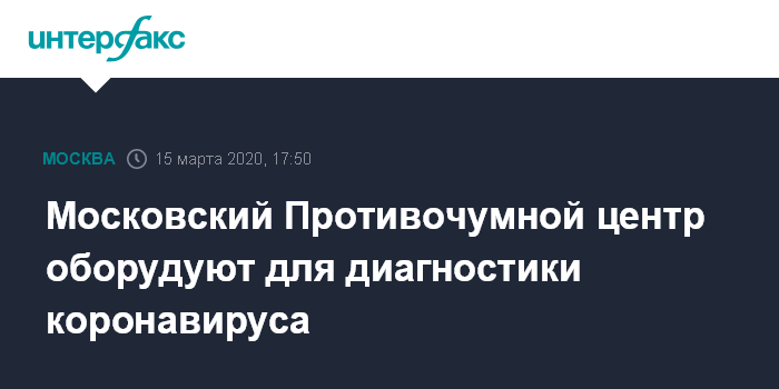 Московский Противочумной центр оборудуют для диагностики коронавируса