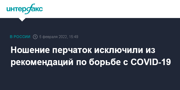 Москва. 5 февраля. Ношение медицинских перчаток исключено из противоэпидемических мер для борьбы с распространением коронавируса, это следует из постановления главного государственного санитарного врача России Анны Поповой, опубликованного на официальном портале правовой информации.