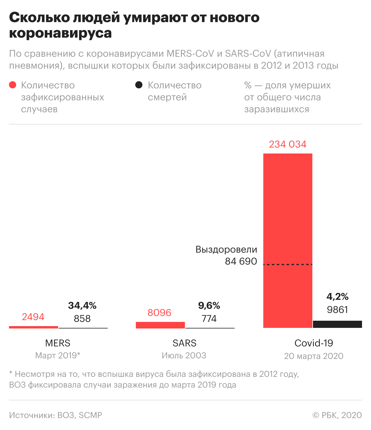 Число жертв коронавируса в мире превысило 11 тыс. человек, всего заразились более 234 тыс. человек. Главное — в материале РБК