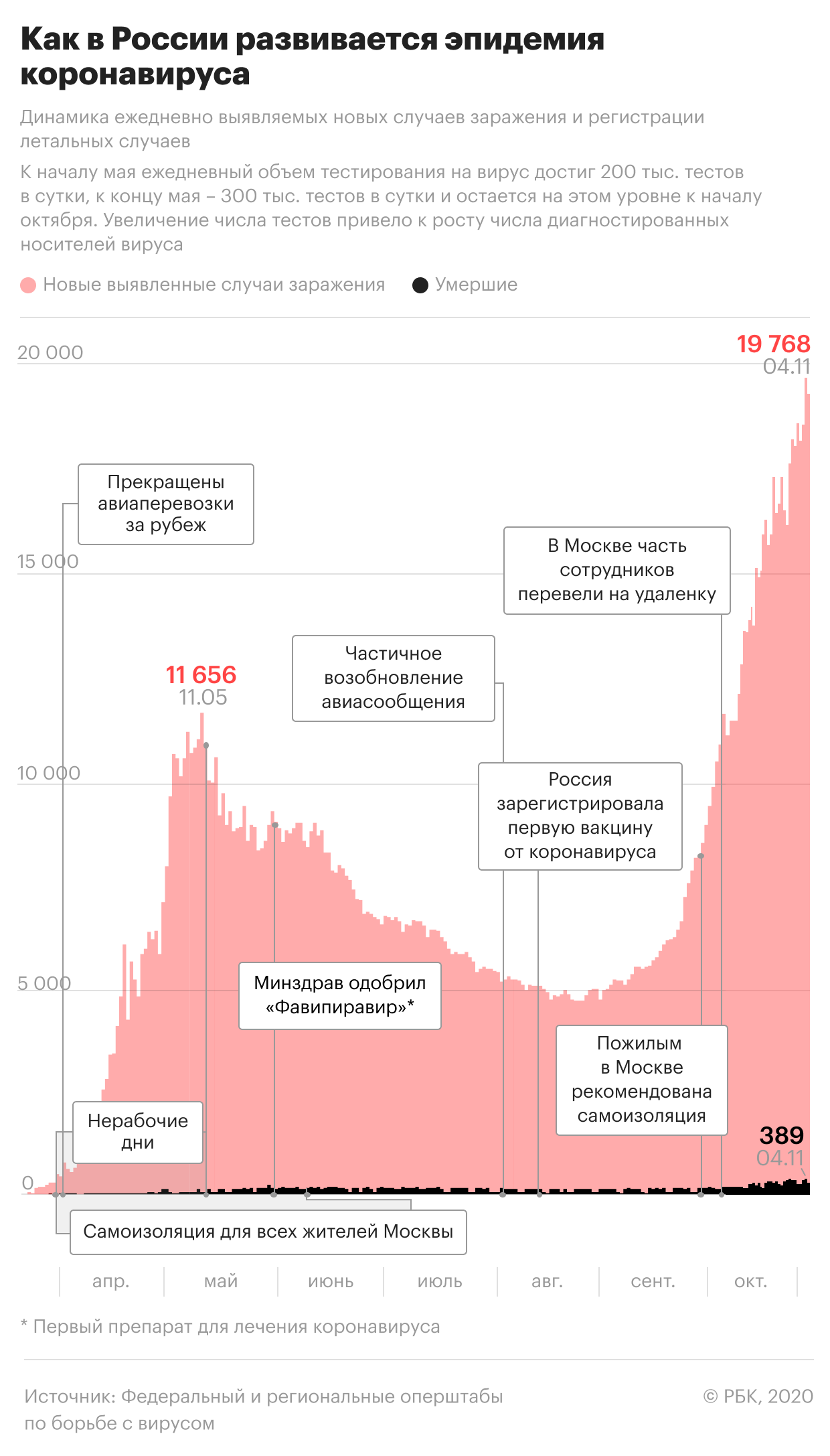 Статистика оперативного штаба расходится с информацией Росстата из-за методологии учета: статистическое ведомство насчитало более 45 тыс. смертей от COVID-19 за апрель—август.