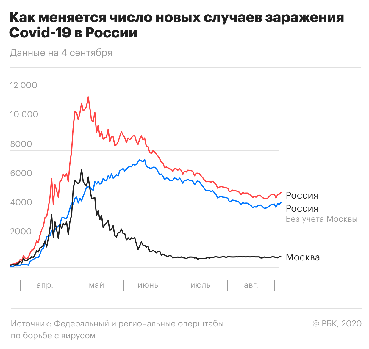 - Лидером по количеству подтвержденных случаев остаются США, где выявлено более 6,2 млн зараженных. Бразилия находится на втором месте (4,09 млн), на третьем — Индия (более 4 млн), на четвертом — Россия, на пятом — Перу (более 670 тыс.).
