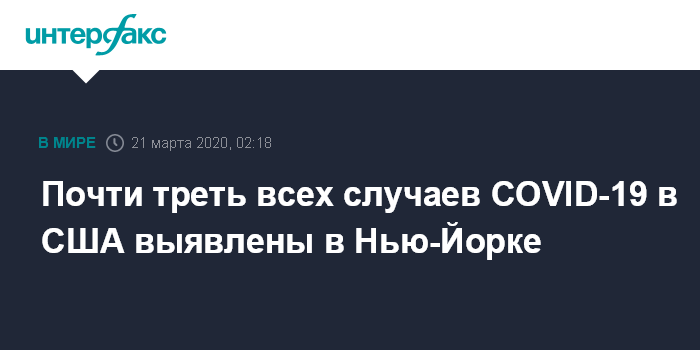 Мэр города уточнил, что в Нью-Йорке находится примерно треть от всех заболевших COVID-19 в Америке.