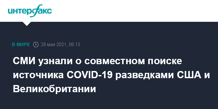 СМИ узнали о совместном поиске источника COVID-19 разведками США и Великобритании