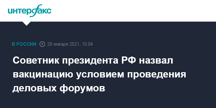 Советник президента РФ назвал вакцинацию условием проведения деловых форумов