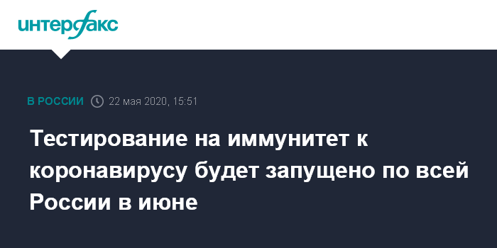 Тестирование на иммунитет к коронавирусу будет запущено по всей России в июне