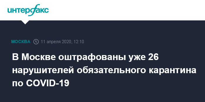 В Москве оштрафованы уже 26 нарушителей обязательного карантина по COVID-19