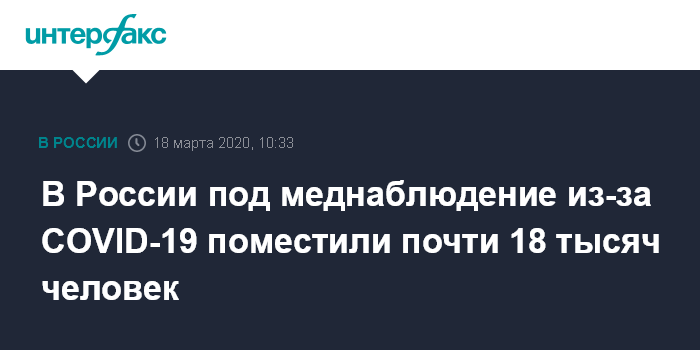 В России под меднаблюдение из-за COVID-19 поместили почти 18 тысяч человек