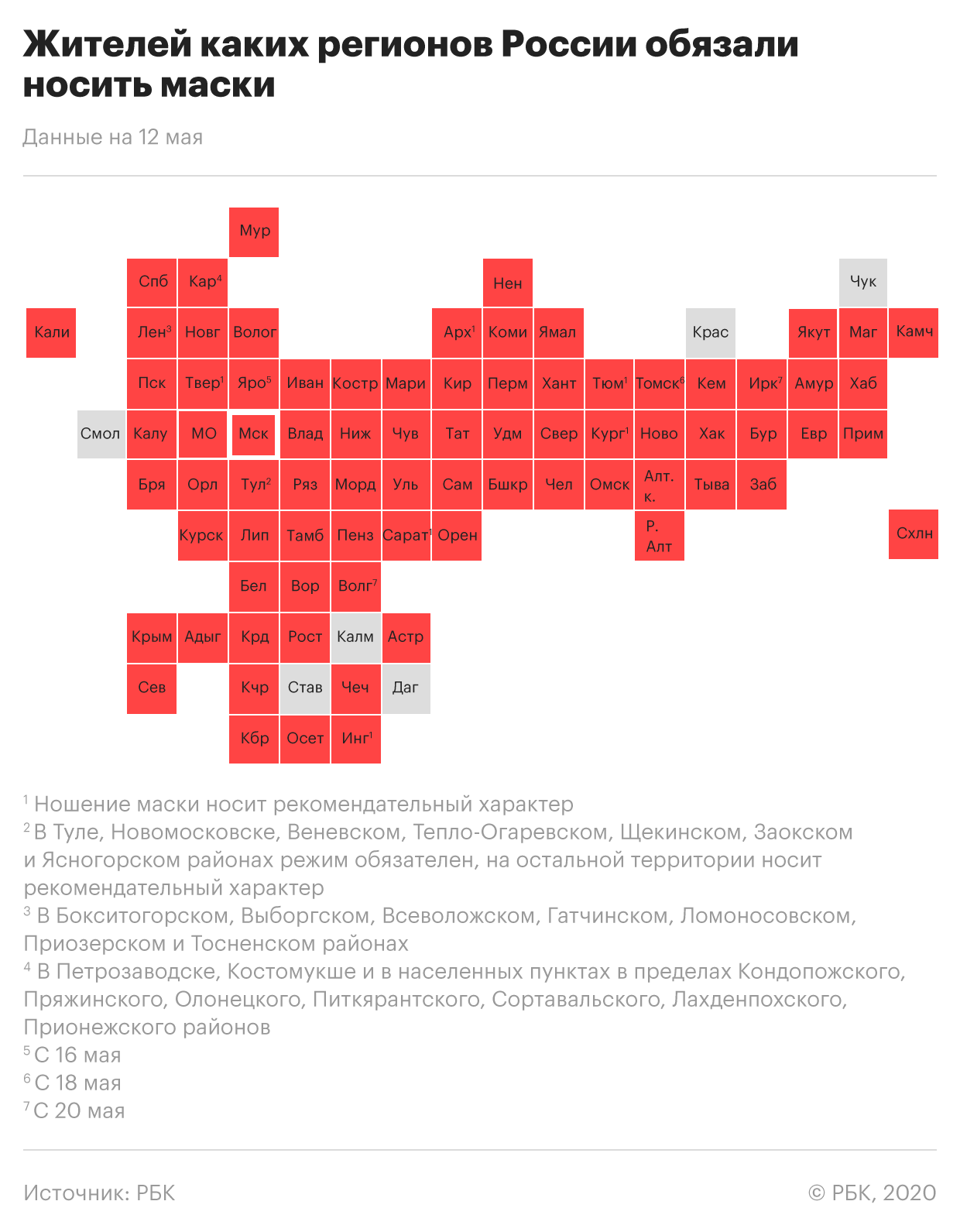С 12 мая в столице начал действовать масочный режим. Жители города обязаны носить средства защиты органов дыхания и перчатки, в том числе при поездках в общественном транспорте. Мэр города Сергей Собянин объяснял, что это необходимо из-за увеличения пассажиропотока после открытия в Москве промышленных предприятий и строек. В первый день нарушителям режима будут выносить лишь предупреждения, однако в дальнейшем штраф за появление в метро и магазинах без средств индивидуальной защиты может грозить штрафом до 5 тыс. руб.