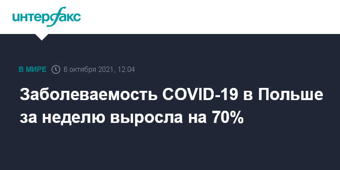 Москва. 6 октября. INTERFAX.RU - Заболеваемость коронавирусом в Польше выросла за последнюю неделю на 70%, сообщили европейские СМИ со ссылкой на польский Минздрав.