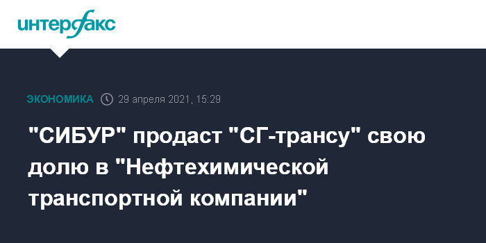 "СИБУР" продаст "СГ-трансу" свою долю в "Нефтехимической транспортной компании"