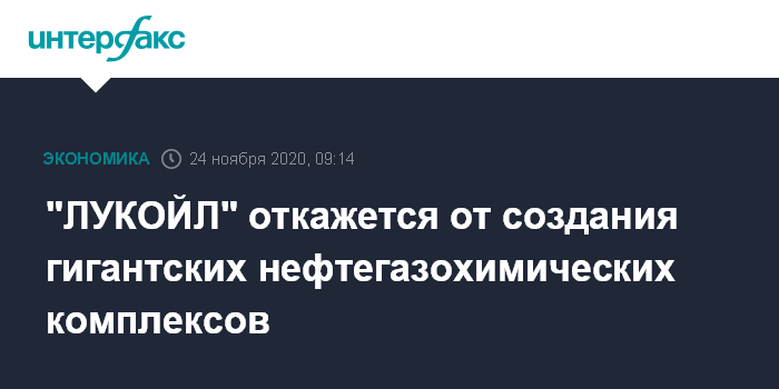 "ЛУКОЙЛ" откажется от создания гигантских нефтегазохимических комплексов