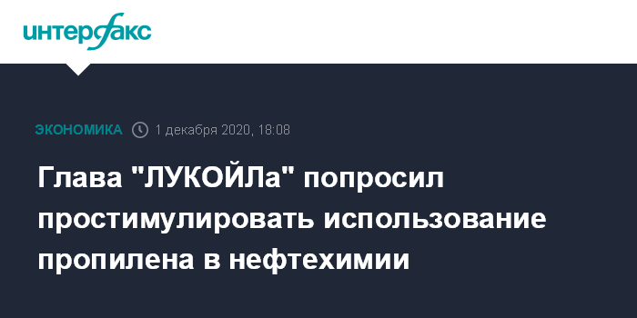 Глава "ЛУКОЙЛа" попросил простимулировать использование пропилена в нефтехимии