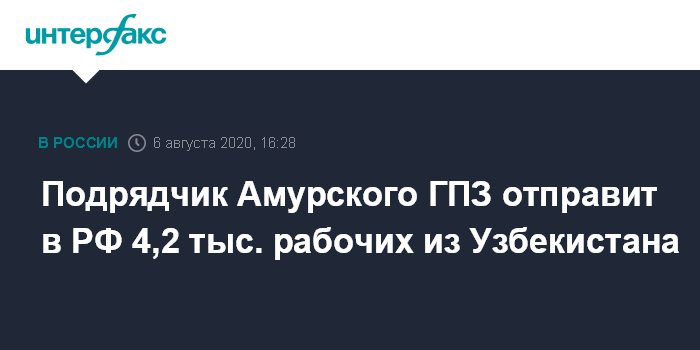 Подрядчик Амурского ГПЗ отправит в РФ 4,2 тыс. рабочих из Узбекистана