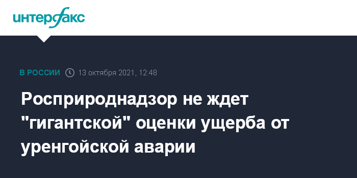 Москва. 13 октября. INTERFAX.RU - Оценка ущерба экологии от аварии на уренгойском заводе подготовки конденсата к транспорту "Газпрома" не будет столь высокой, как ранее предъявленные другим компаниям претензии за загрязнение, к примеру, рек и озер, ожидают в Росприроднадзоре.