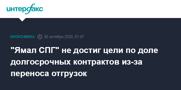 Ранее он говорил, что по итогам 2020 года "Ямал СПГ" продаст 75% грузов по долгосрочным контрактам и 25% - по спотовым.