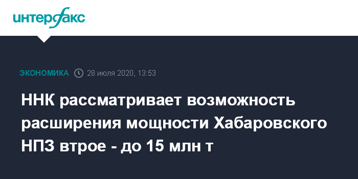 ННК рассматривает возможность расширения мощности Хабаровского НПЗ втрое - до 15 млн т