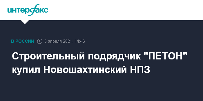 Москва. 6 апреля. INTERFAX.RU - Крупный строительный подрядчик "ПЕТОН" стал владельцем Новошахтинского завода нефтепродуктов (Ростовская область). Ранее подрядчик заключил крупные контракты на модернизацию этого предприятия.
