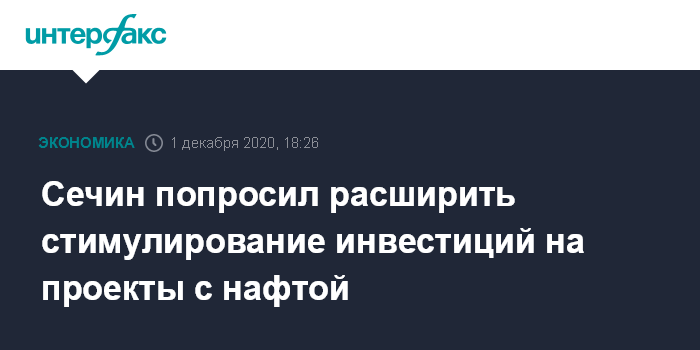 Сечин попросил расширить стимулирование инвестиций на проекты с нафтой