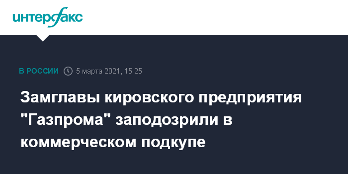 Замглавы кировского предприятия "Газпрома" заподозрили в коммерческом подкупе