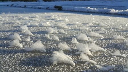 "Ледяные цветы (ice flowers) по своей природе являются одним из видов кристаллической изморози, формирующейся на поверхности льда в тихие морозные ночи вследствие десублимации водяного пара в приземном слое воздуха", - пишут авторы сообщений, поясняя научную сторону явления.