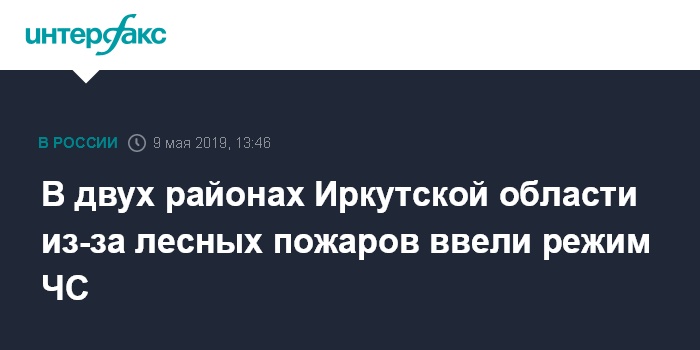 Власти двух районов Иркутской области ввели режим ЧС из-за природных пожаров, сообщает в четверг пресс-служба областного управления МЧС России.