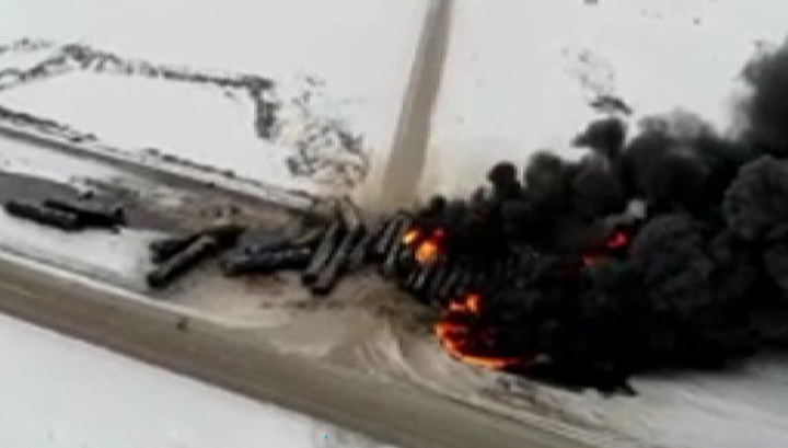 На юге Канады сошел с рельсов поезд, перевозивший нефть. Несколько десятков цистерн опрокинулись и загорелись. Информации о пострадавших — пока нет. Из-за сильного задымления эвакуированы жители ближайшей деревни, автомобильные дороги перекрыты.