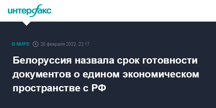 Белоруссия назвала срок готовности документов о едином экономическом пространстве с РФ