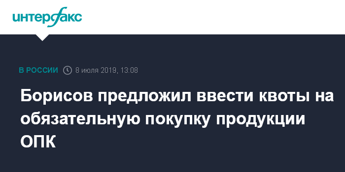 Ранее в ходе рабочего визита в Курганскую область Борисов сообщал о проработке вопроса квотирования на покупку продукции предприятий ОПК в рамках национальных проектов.