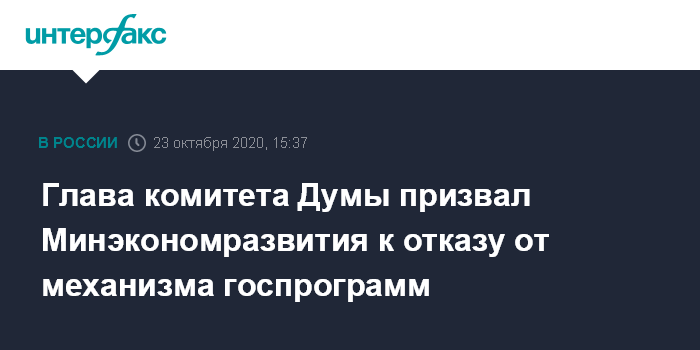 Глава комитета Думы призвал Минэкономразвития к отказу от механизма госпрограмм