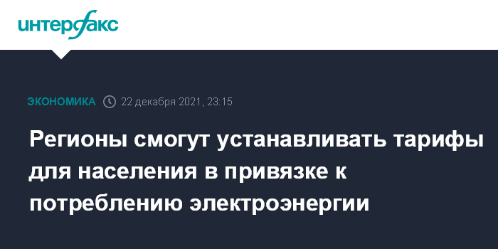 Регионы смогут устанавливать тарифы для населения в привязке к потреблению электроэнергии
