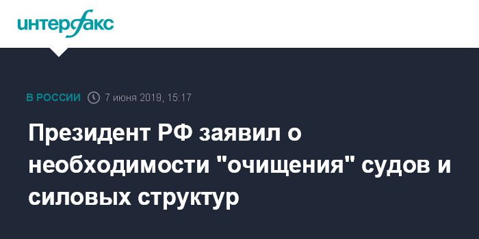 Президент РФ заявил о необходимости "очищения" судов и силовых структур