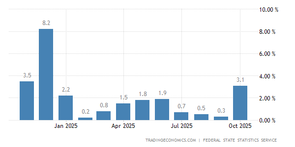 Производство различного мяса (кроме мяса птицы) выросло до 2,3 млн т (+7,7%). Выросло производство легковых автомобилей - на 21% до 1,4 млн машин, автобусов - на 3,9% до 26,8 тыс., пассажирских железнодорожных вагонов - на 49,1% до 963 ед.