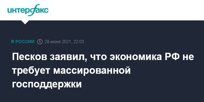 Песков заявил, что экономика РФ не требует массированной господдержки