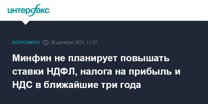 Минфин не планирует повышать ставки НДФЛ, налога на прибыль и НДС в ближайшие три года