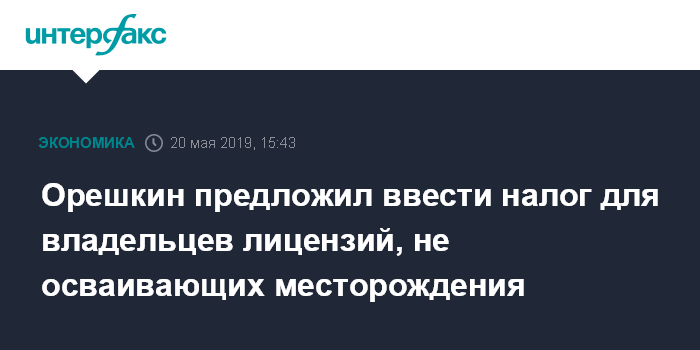 Москва. 20 мая. INTERFAX.RU - Держатели неиспользуемых лицензии на месторождения должны облагаться повышенным налогом, чтобы создать мотивацию у компаний к отказу от них, если участок не осваивается, считает глава Минэкономразвития Максим Орешкин.