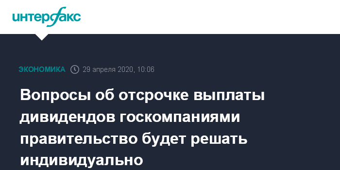 Вопросы об отсрочке выплаты дивидендов госкомпаниями правительство будет решать индивидуально