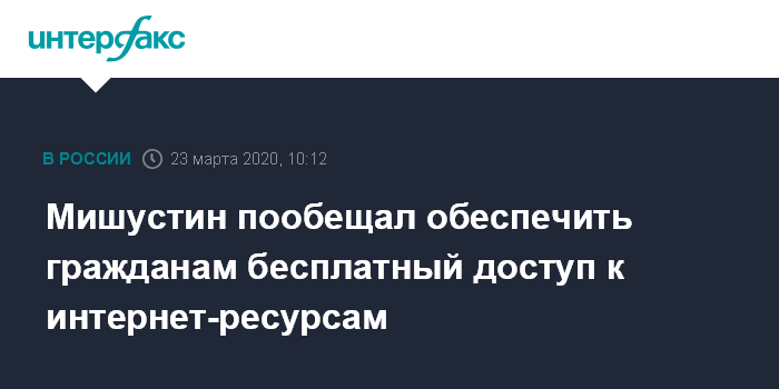 "Чтобы помочь им в такой ситуации, мы обеспечим бесплатный доступ к полезным цифровым сервисам. Об этом есть договоренность с российскими интернет-компаниями, которые совместно с Минкомсвязи занимаются этой проблематикой. Информация о таких сервисах будет собрана на едином интернет-ресурсе "Всё.онлайн", - сказал глава правительства.