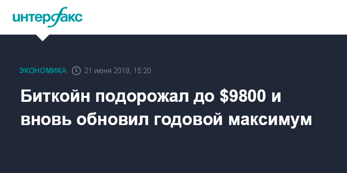 Москва. 21 июня. INTERFAX.RU - Ралли биткойна продолжается - в ходе торгов в пятницу стоимость криптовалюты превысила $9800 впервые более чем за год.