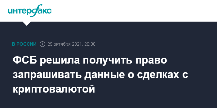ФСБ решила получить право запрашивать данные о сделках с криптовалютой