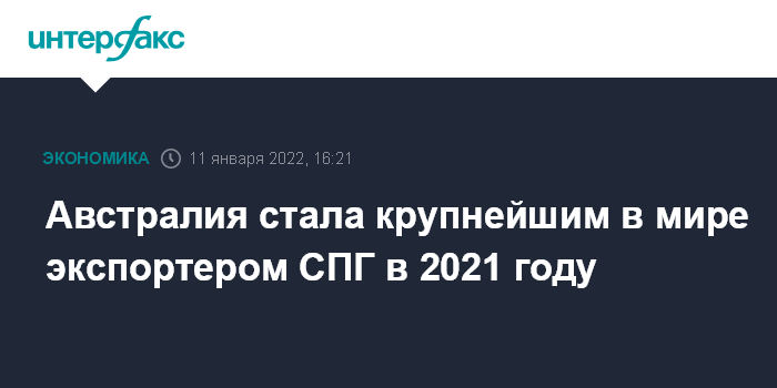 Москва. 11 января. Австралия стала крупнейшим в мире экспортером СПГ в 2021 году, обойдя Катар, согласно данным Kpler, исследующей рынок.